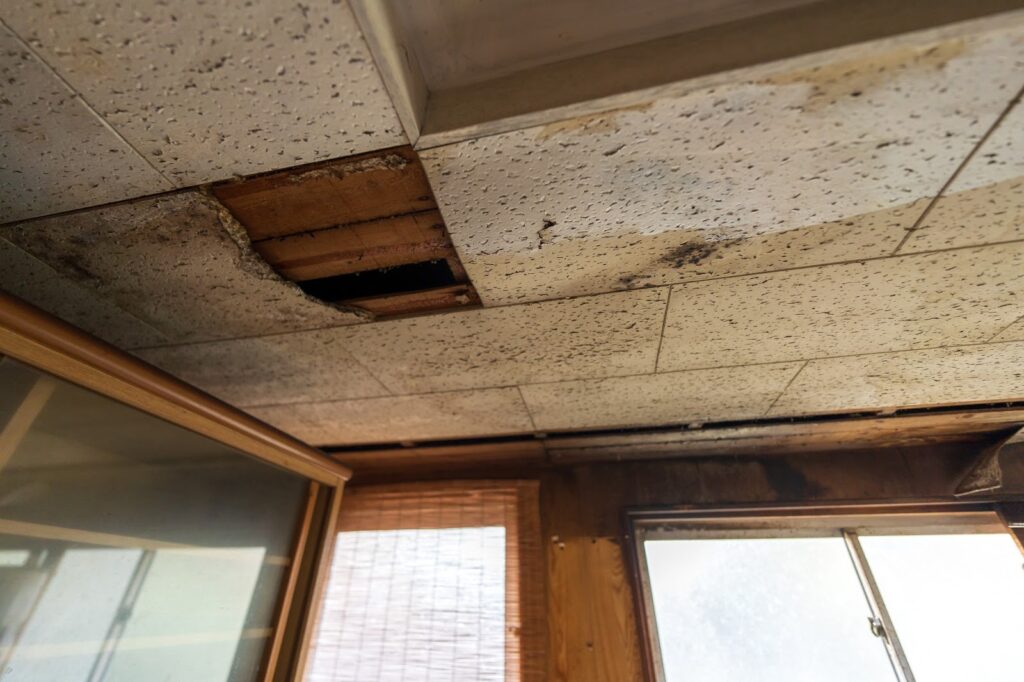 屋根材の破損や防水コートの剥がれが原因で隙間ができると、そこから雨水が浸入して天井にシミができます。雨漏りは経年劣化だけでなく、台風や地震などの自然災害によっても発生します。